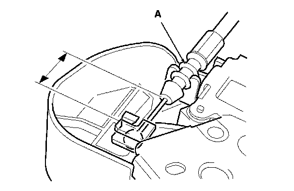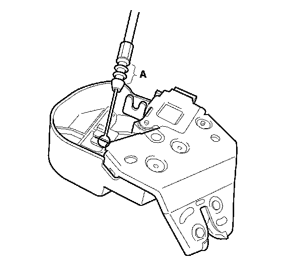 - Reinstall the manual trunk lid opener cable end (A) back to the position noted in step 4. Check the operation of the manual trunk lid opener, by pulling on the rubber tab inside the pass through opening. If necessary, adjust the cable end position.