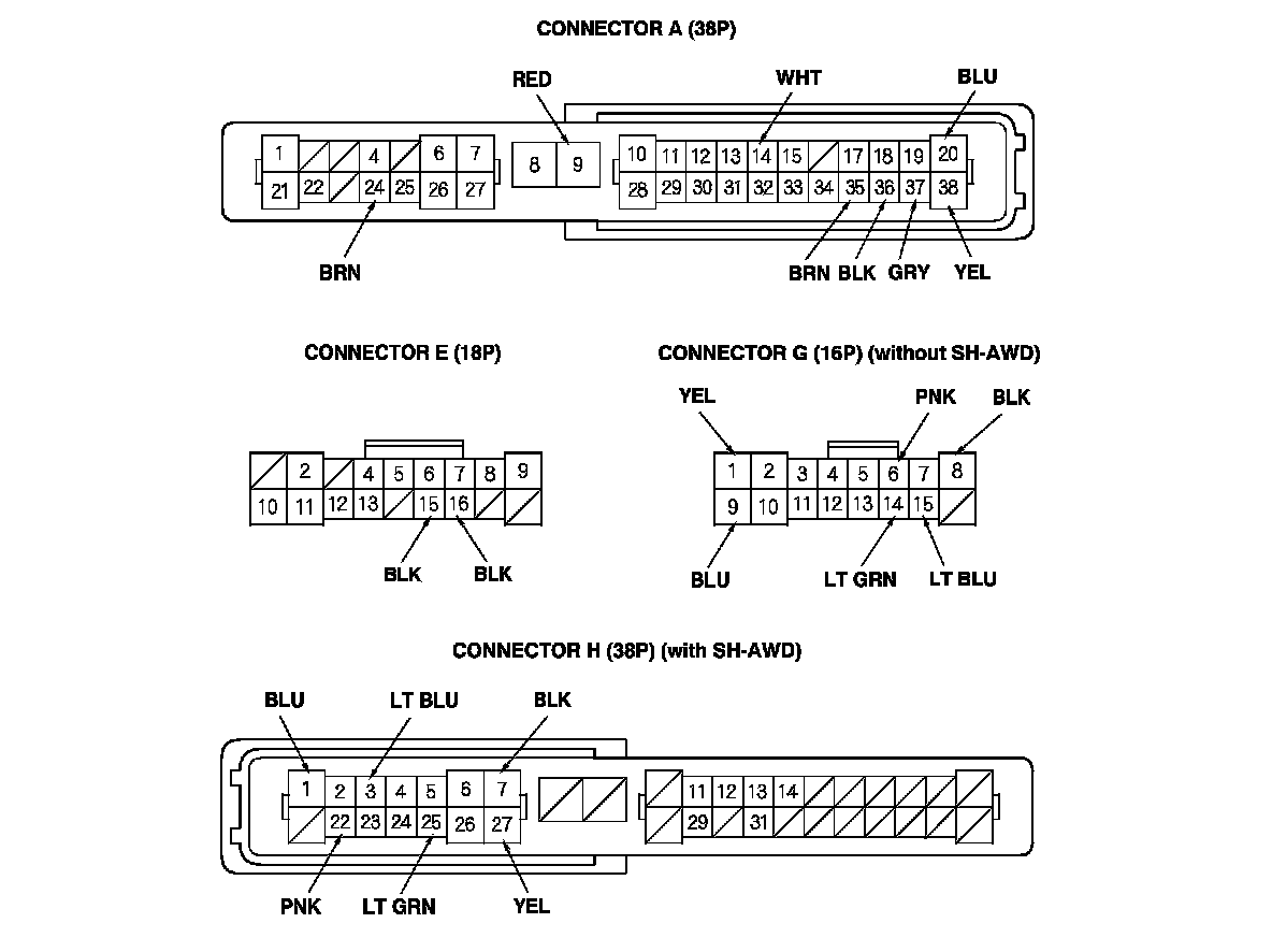 18. Reconnect the 37P connector to the door multiplex control unit, and do these input tests at the following connector.