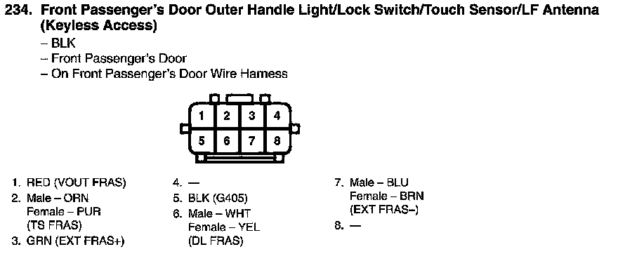 Front Passenger's Door Outer Handle Light/Lock Switch/Touch Sensor/LF Antenna Connector View (Keyless Access)