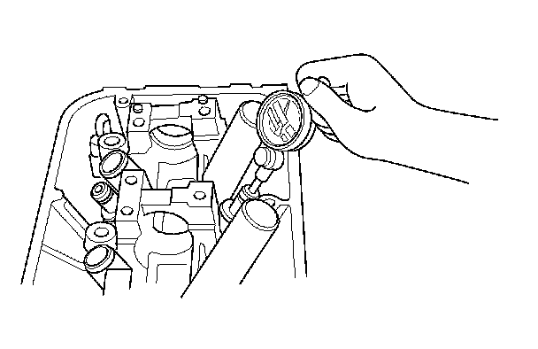 2. Subtract the O.D. of the valve stem, measured with a micrometer, from the I.D. of the valve guide, measured with an inside micrometer or a ball gauge. Take the measurements in three places along the valve stem and three places inside the valve guide. The difference between the largest guide measurement and the smallest stem measurement should not exceed the service limit.
