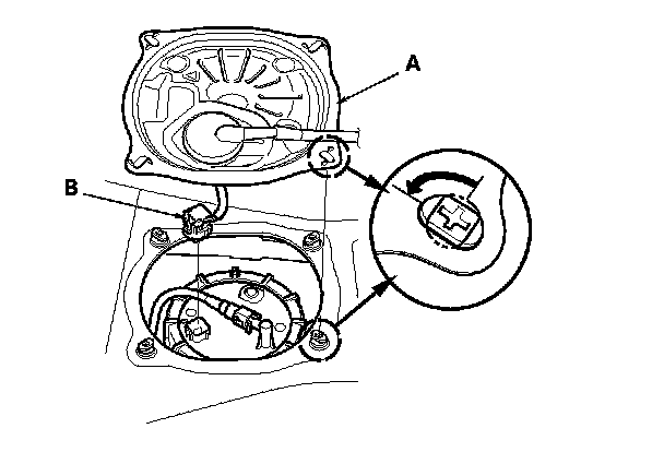6. Disconnect the fuel tank unit 4P connector (B).