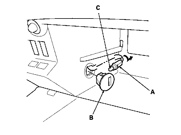 3. Twist the socket (A) to remove it from the glove box light (B).