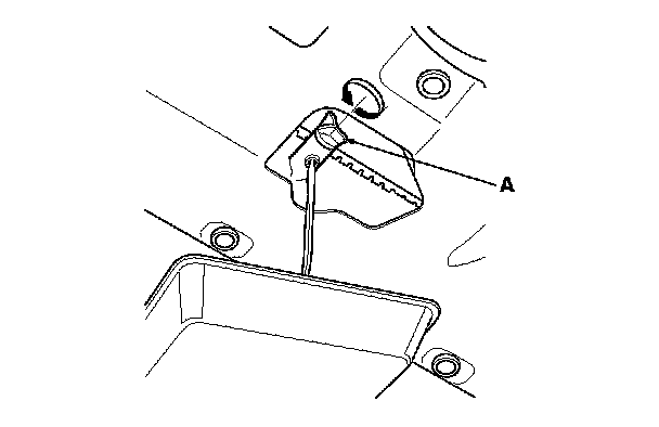 9. Fill the coolant reservoir to the MAX mark (A) with Acura Long Life Antifreeze/Coolant Type 2 (P/N OL999-9011A).