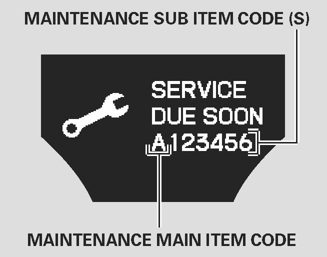 When the remaining engine oil life is 15 to 6 percent, the multi-information display shows a "SERVICE DUE SOON" message along with the maintenance item code(s) indicating the main and sub items required at the time of the oil change. Refer to Maintenance / Service Intervals / Indicator Based Maintenance Service / Indicator Based Service for a complete list of the maintenance main items and sub items. Indicator Based Service