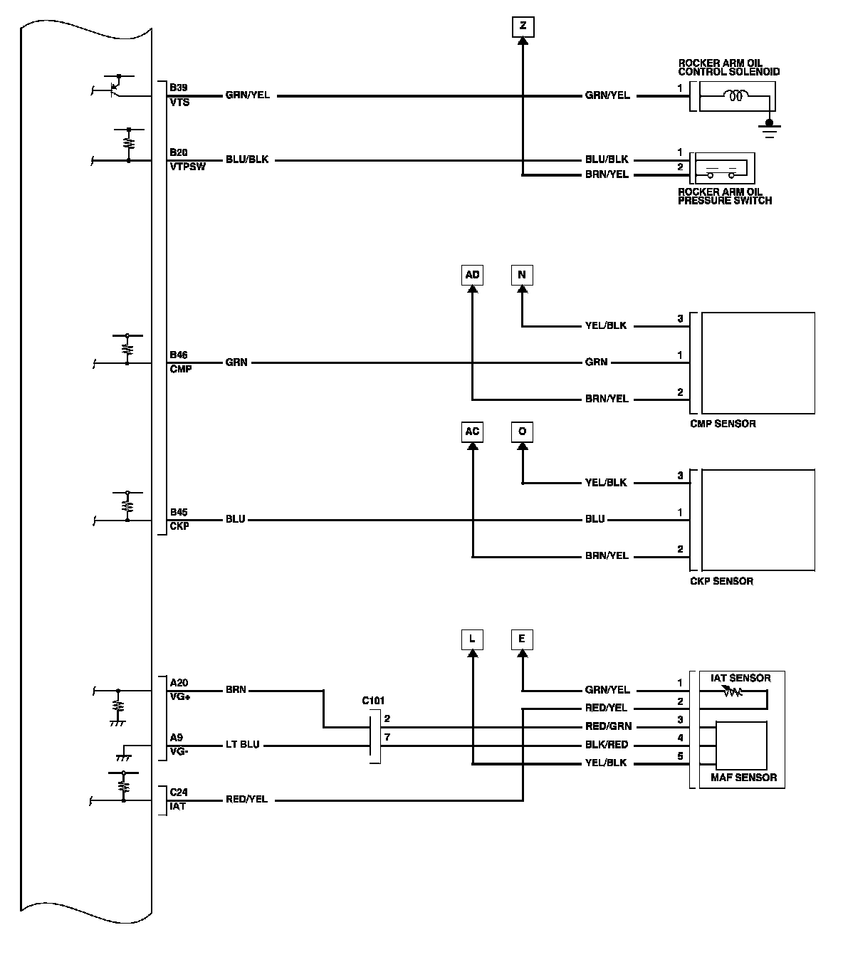 PCM Inputs and Outputs at Connector C (circle) (49P)