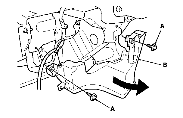3. Left side; remove the bolts (A), then release the intake air resonator (B).
