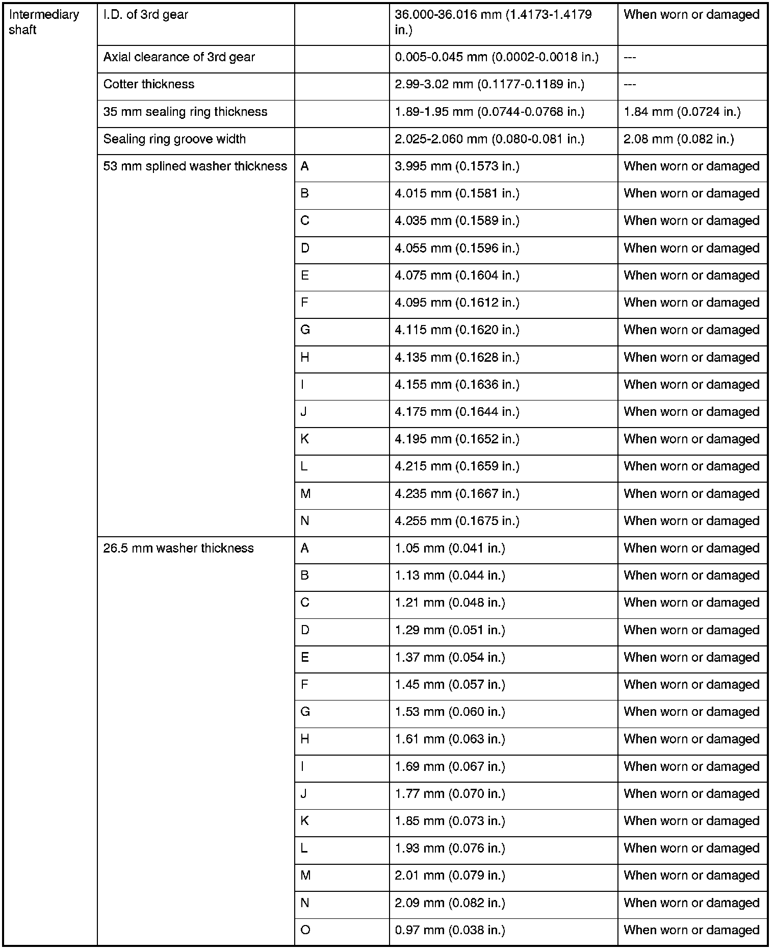 Intermediary Shaft Specifications