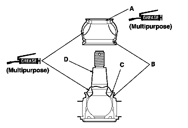 5. Pack fresh grease into the base (C). Do not let dirt or other foreign materials get into the boot.