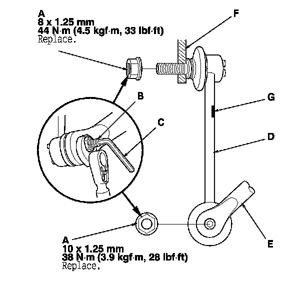 - The stabilizer link has a paint mark (G). The paint mark indicates the difference between the left and right stabilizer links.