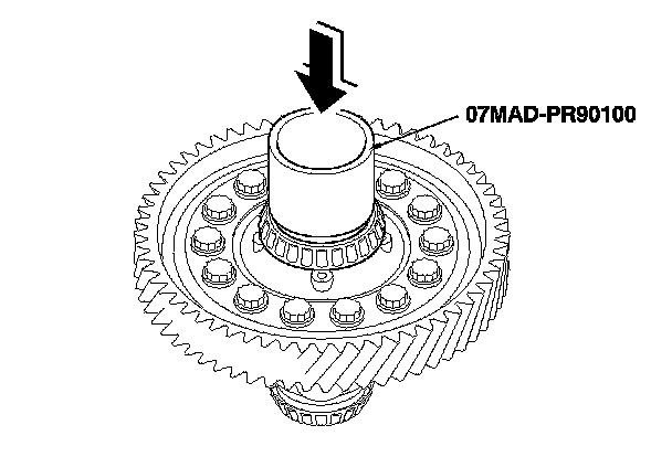 - Press the bearing on securely so there is no clearance between the bearing and the differential carrier.