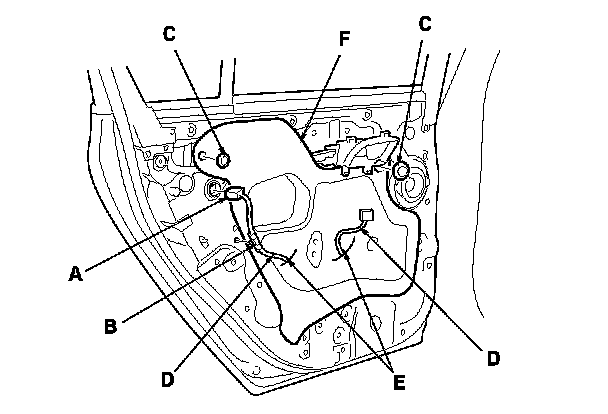 1. Remove the door panel. Rear Door Panel Removal/Installation