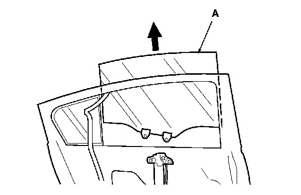 15. Remove the quarter glass (A). Take care not to damage the outer weatherstrip (B).
