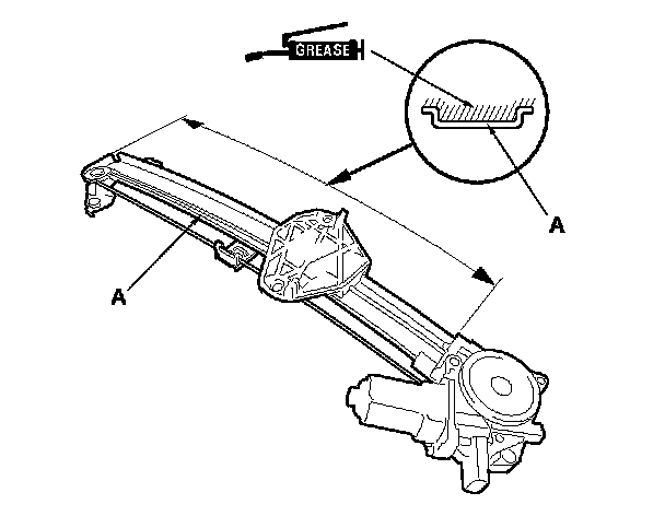 18. Apply multipurpose grease to all the sliding surfaces of the regulator (A) where shown.