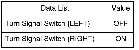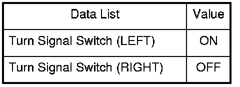 6. Check each turn signal switch position value with the DATA LIST menu.