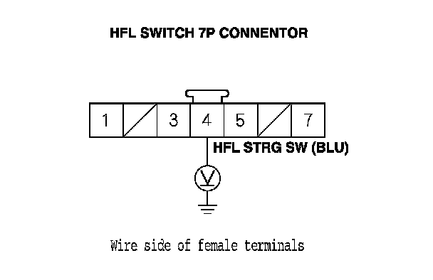 10. Measure the voltage between HFL switch 7P connector terminal No. 4 and body ground.