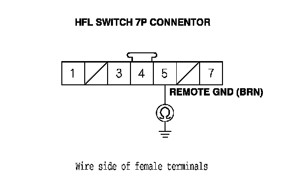 16. Check for continuity between HFL switch 7P connector terminal No. 5 and body ground.