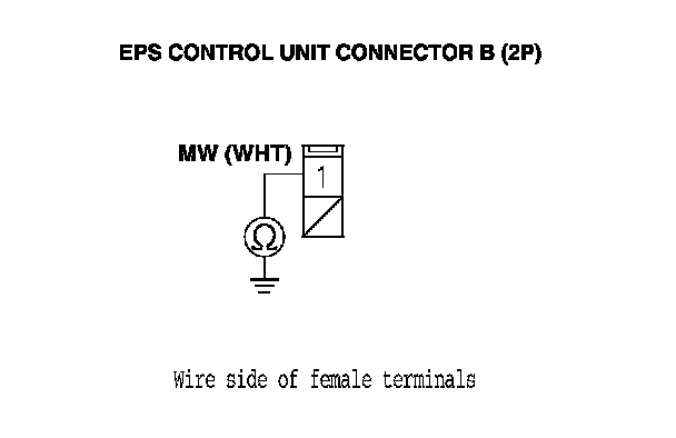 10. Check for continuity between body ground and EPS control unit connector B (2P) terminal No. 1, connector C (2P) terminal No. 1, and connector C (2P) terminal No. 2 individually.