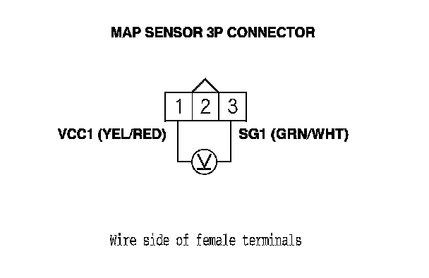 7. Measure the voltage between MAP sensor 3P connector terminals No. 1 and No. 3.