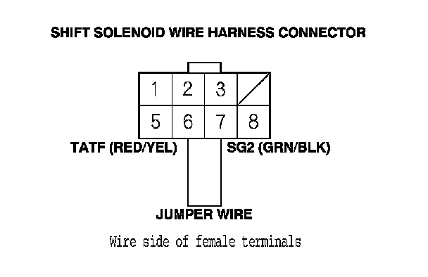 5. Connect the shift solenoid wire harness connector terminal No. 6 to body ground with a jumper wire.