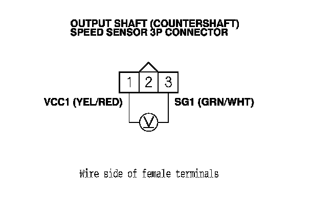 9. Measure the voltage between output shaft (countershaft) speed sensor 3P connector terminals No. 1 and No. 3.