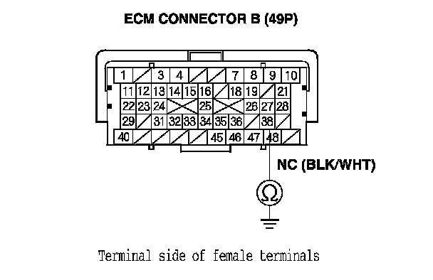 13. Check for continuity between ECM connector terminal B38 and body ground.