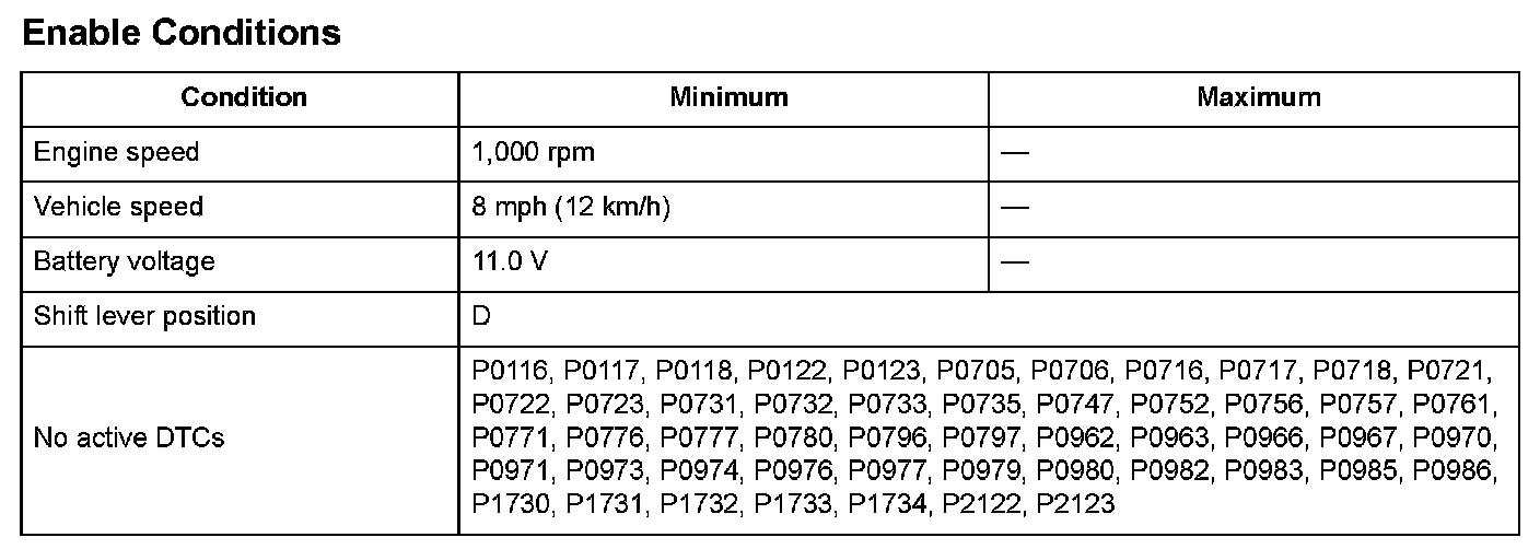 Start the engine, shift to D, and drive the vehicle at a speed of 8 mph (12 km/h) or more for at least 12 seconds in 4th gear Drive the vehicle in this manner only if the traffic regulations and ambient conditions allow.