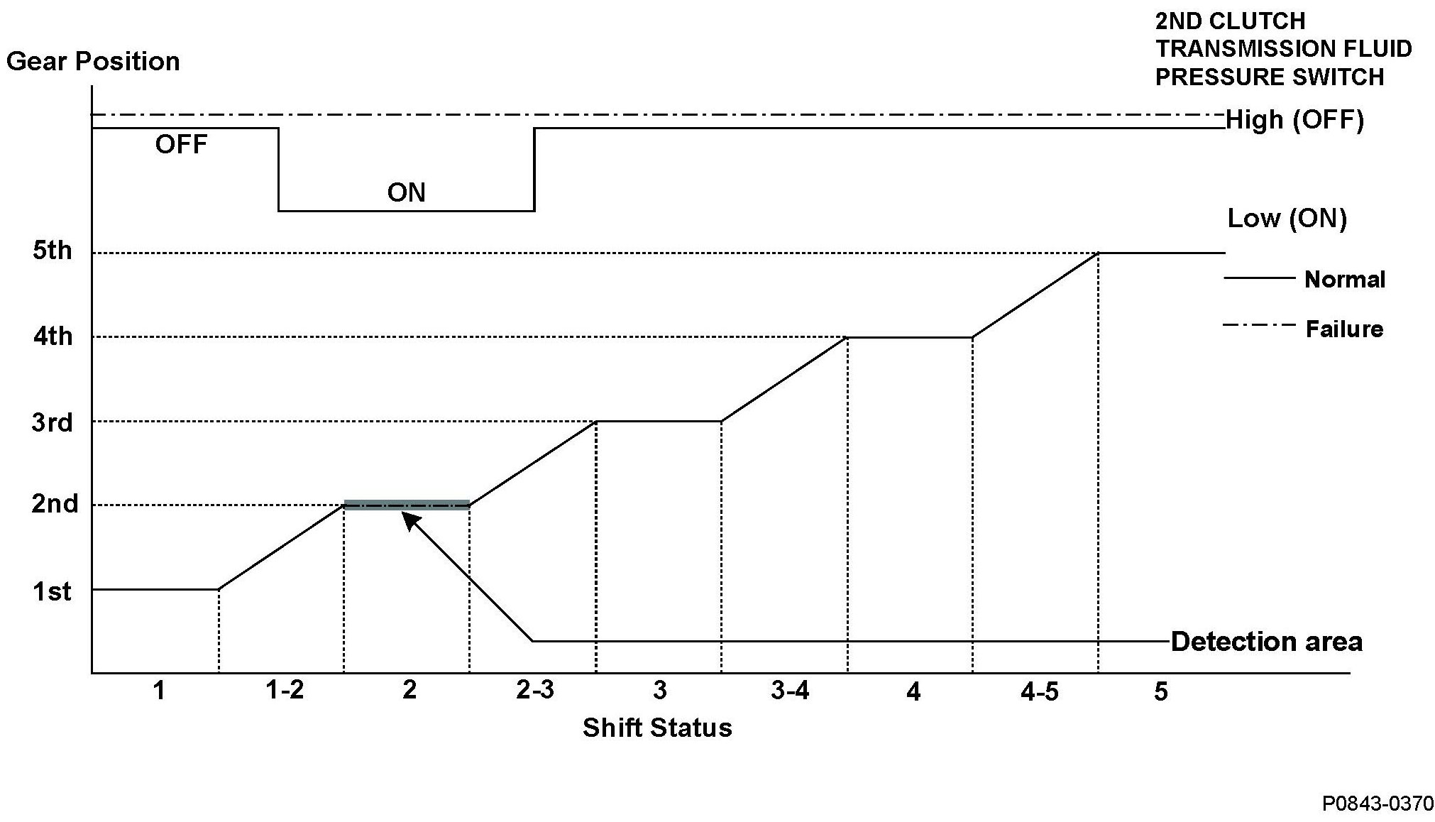 DTC P0843: Open in 2nd Clutch Transmission Fluid Pressure Switch Circuit, or 2nd Clutch Transmission Fluid Pressure Switch Stuck OFF