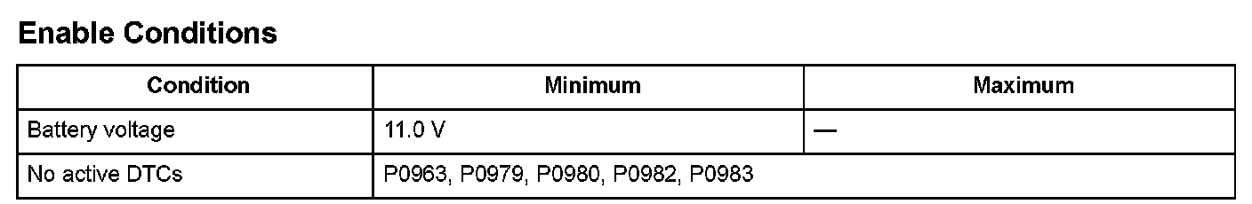 A/T clutch pressure control solenoid valve A is used for the clutch pressure control and the lock-up control. A spool in A/T clutch pressure control solenoid valve A pushes a valve according to the duty cycle that is controlled by the powertrain control module (PCM) to pressurize fluid so the hydraulic pressure is proportional to the current. The PCM measures the current flowing through A/T clutch pressure control solenoid valve A and uses feedback control to compensate for the difference between the actual current and the commanded one. If the measured current for the PCM output duty cycle is not within a specified range (open or short), a malfunction is detected and a DTC is stored.