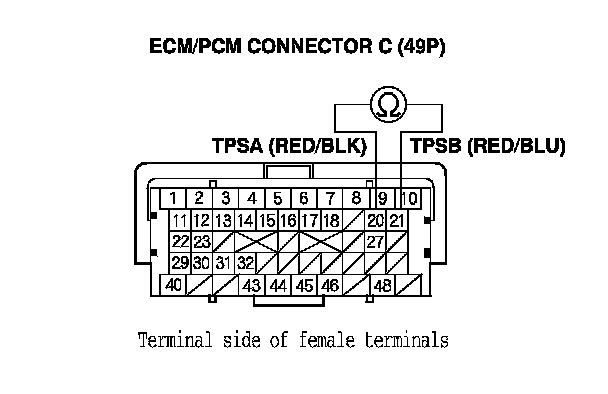 YES - Repair short in the wires between ECM/PCM connector terminals C20 (TPSA line) and C21 (TPSB line), then go to step 17.