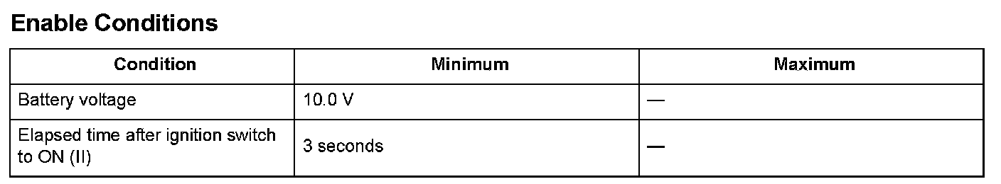 The controller area network (CAN) transmits/receives pulsing signals to/from the control modules simultaneously by using two signal lines (CANH and CANL). When the engine control module (ECM)/powertrain control module (PCM) does not receive the signals via the CAN lines for a set time or more, the ECM/PCM detects a malfunction and a DTC is stored.