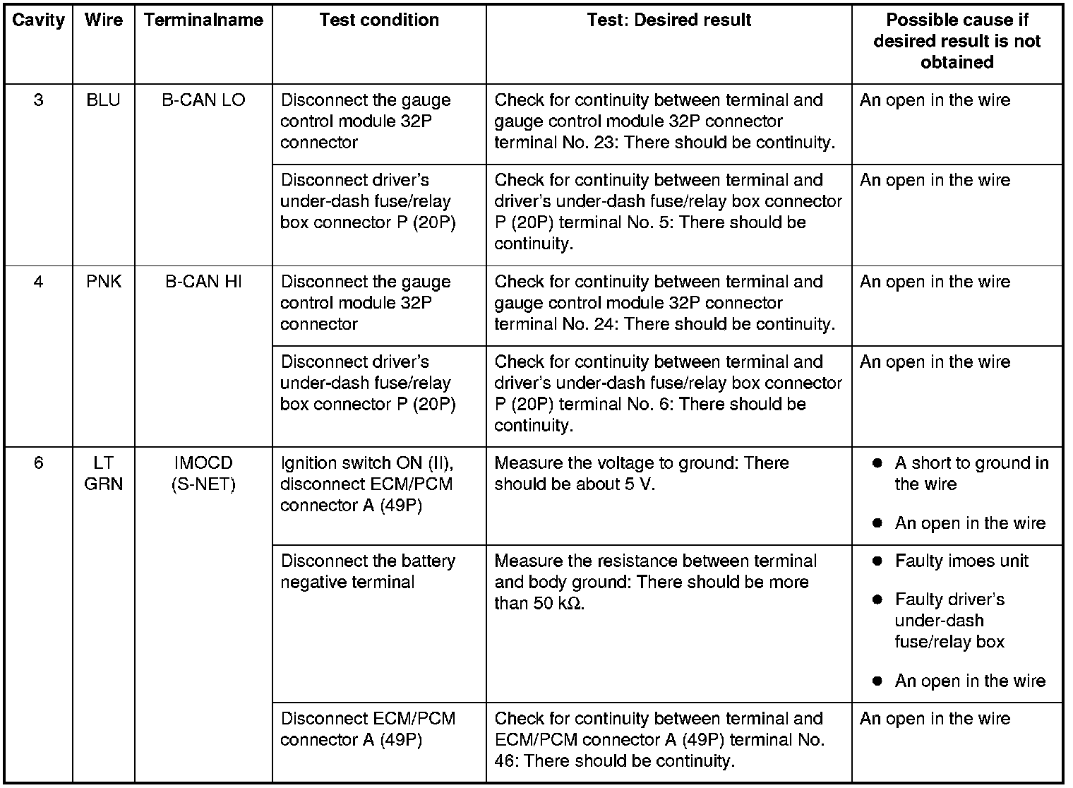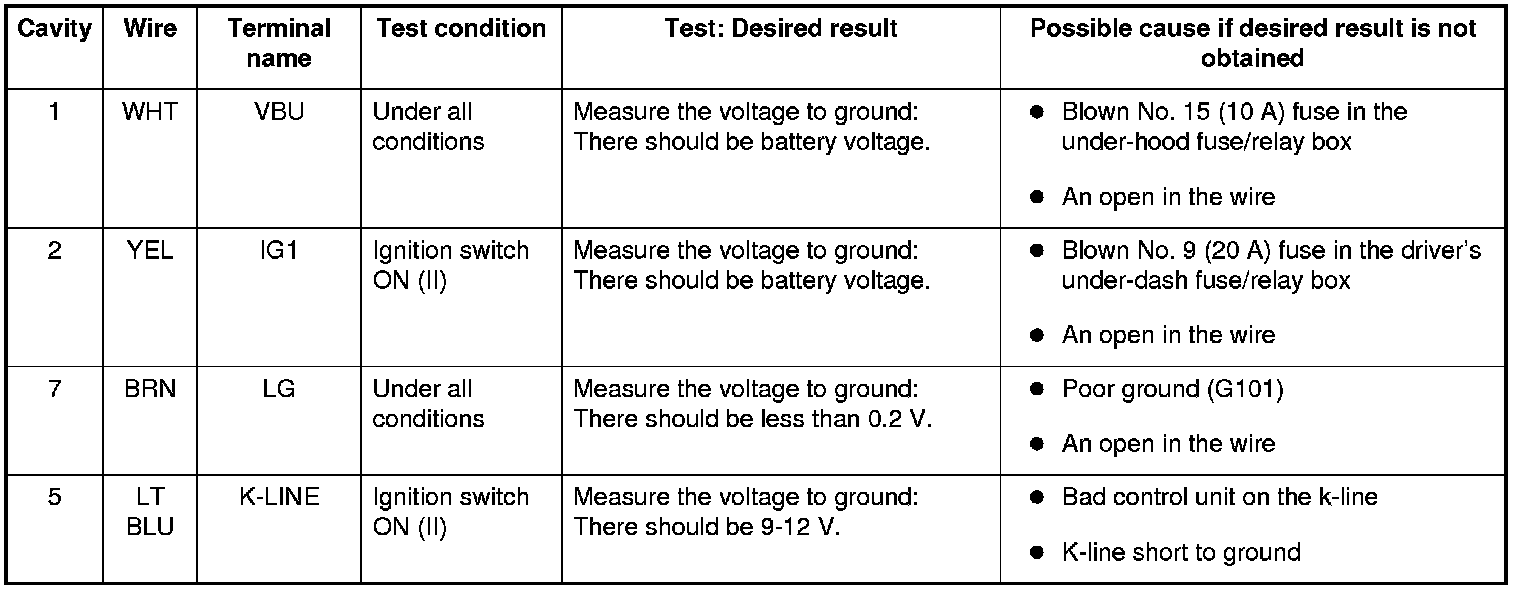 NOTE: Before testing, troubleshoot the multiplex integrated control unit first, using B-CAN System Diagnosis Test Mode A. Troubleshooting - B-CAN System Diagnosis Test Mode A