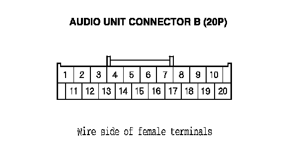 12. Check for continuity between the terminals of audio unit connector B (20P) according to the table.
