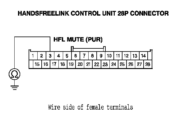 17. Check for continuity between body ground and HandsFreeLink control unit 28P connector terminal No. 3.