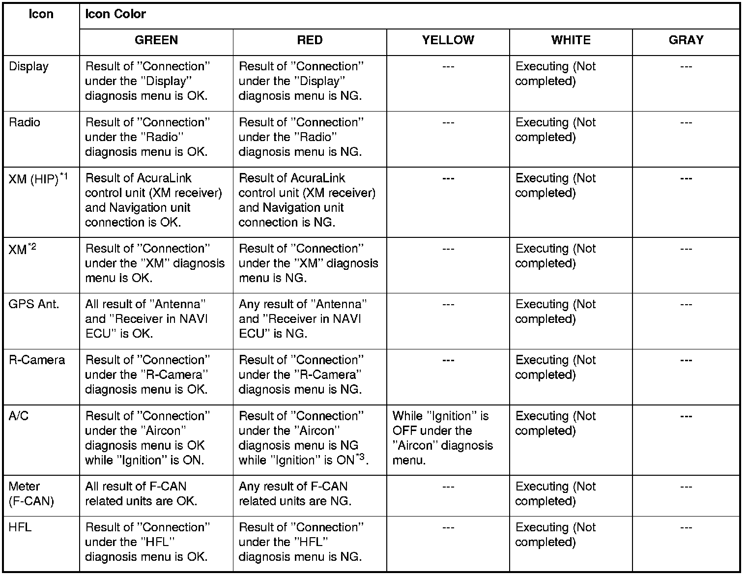 *3: DTC 2703 can be stored when the ignition switch is in ACCESSORY (I). With the ignition switch is in ACCESSORY (I), the climate control unit is turned off and the navigation unit loses communication and stores DTCs. It is possible that the system is normal with DTC 2703 stored. Check the system links with the engine running, and if it shows normal, the system is OK at this time.