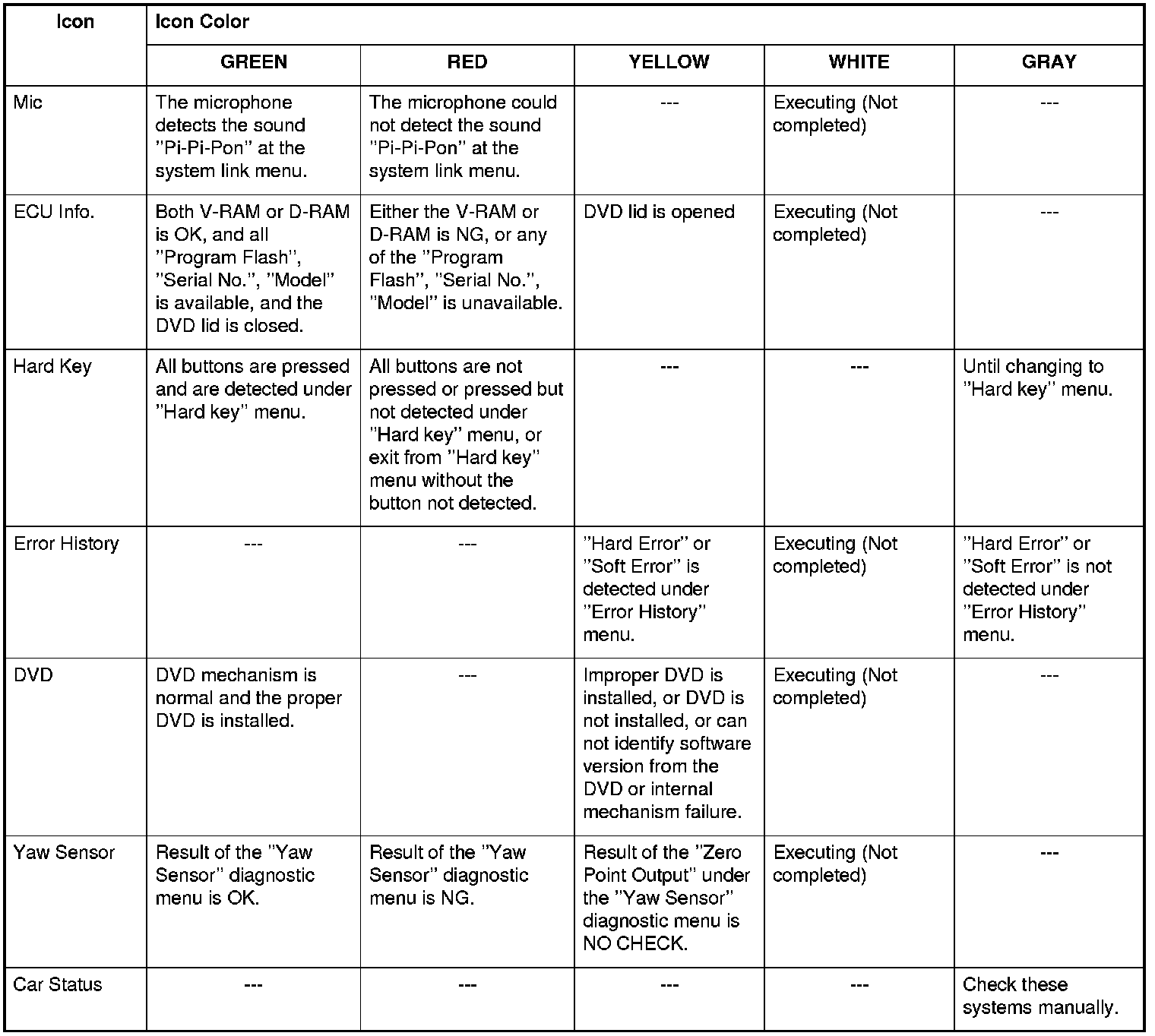Each icon color is explained in the table below.