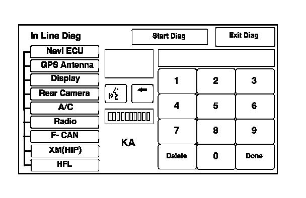 When a navigation unit is powered up for the first time at the factory or after replacement with a new or remanufactured navigation unit, the factory diagnosis screen (In Line Diag) appears. Normally the factory does the steps necessary to verify proper operation and terminate the factory diagnosis.