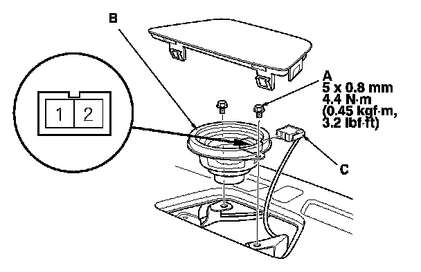 3. Disconnect the connector (C), and remove the front center speaker.