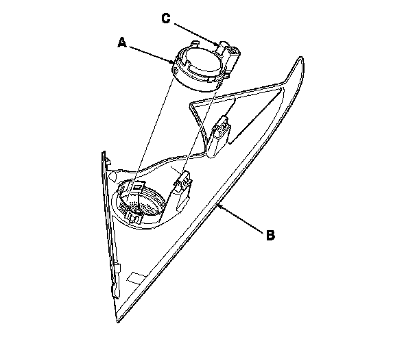 2. Remove the tweeter (A) from the front door tweeter cover (B). With ELS audio system, check the capacitor (C) condition. If any problems are found, replace the front door tweeter.