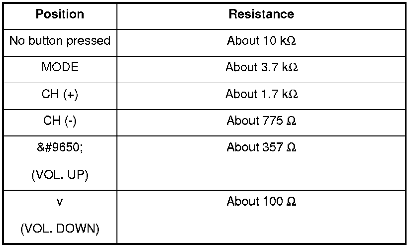 3. If the resistance is not as specified, replace the audio remote switch.