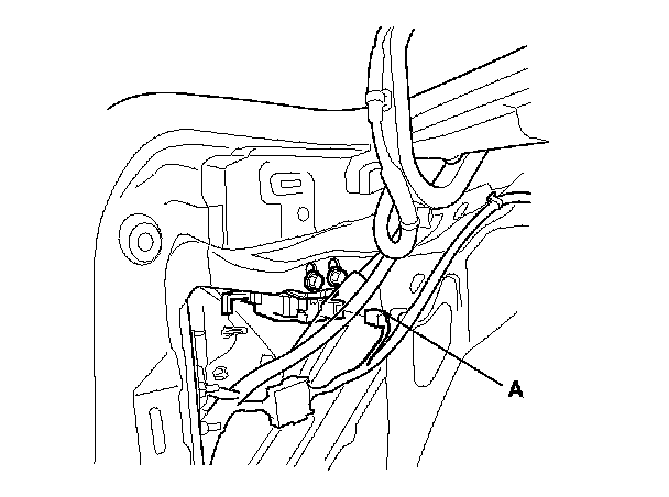 1. Remove the left trunk side trim panel. Interior Trim Removal/Installation - Trunk Area