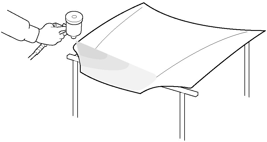 - Spray the primer surface (2-part urethane primer surfacer) on the soft chipping guard primer coating areas when you replace parts using soft chipping guard primer coat.