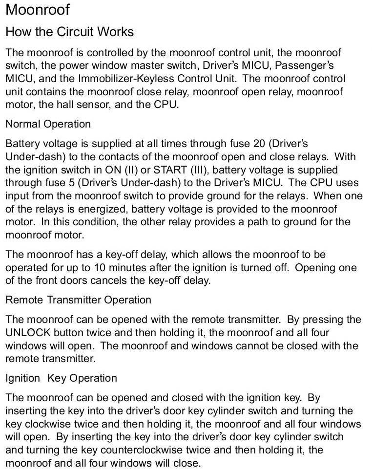 Sunroof / Moonroof: Description and Operation