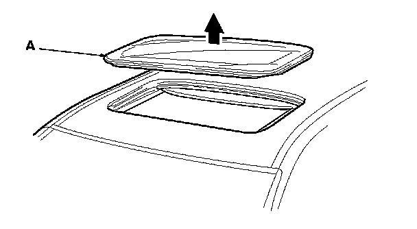 4. Remove the glass (A) by lifting it up. Do not damage the roof panel.