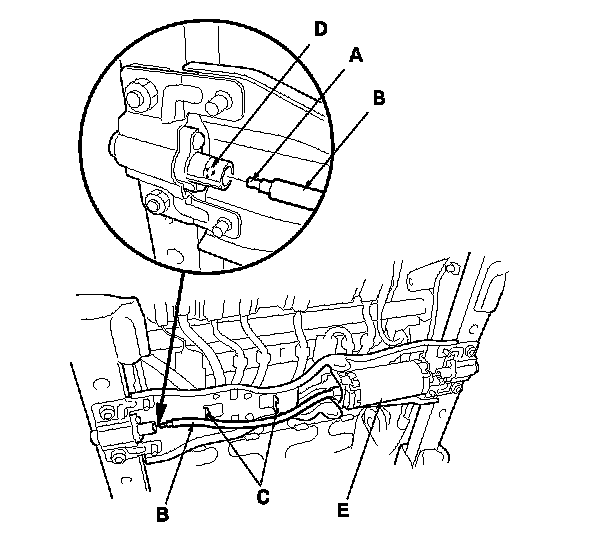 Disconnect the cable from the worm gear (D) in the inner seat track by pulling out the housing.