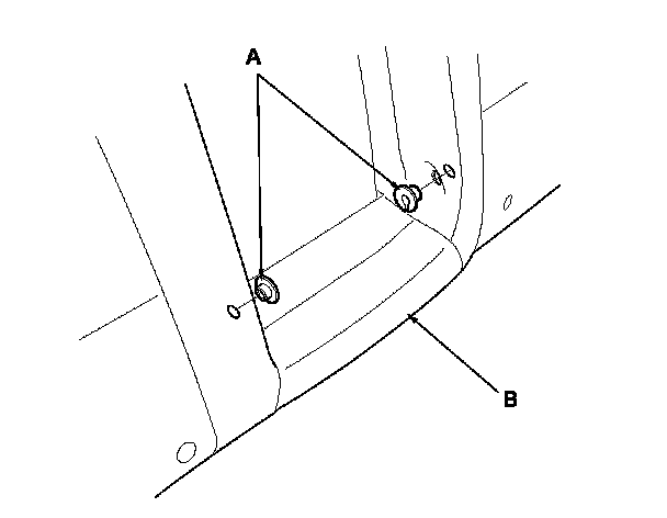 2. Unzip the left seat-back cover (A), then pull back the seat-back cover/pad (B) as needed. Remove the armrest mounting bolt from the armrest pivot shaft.
