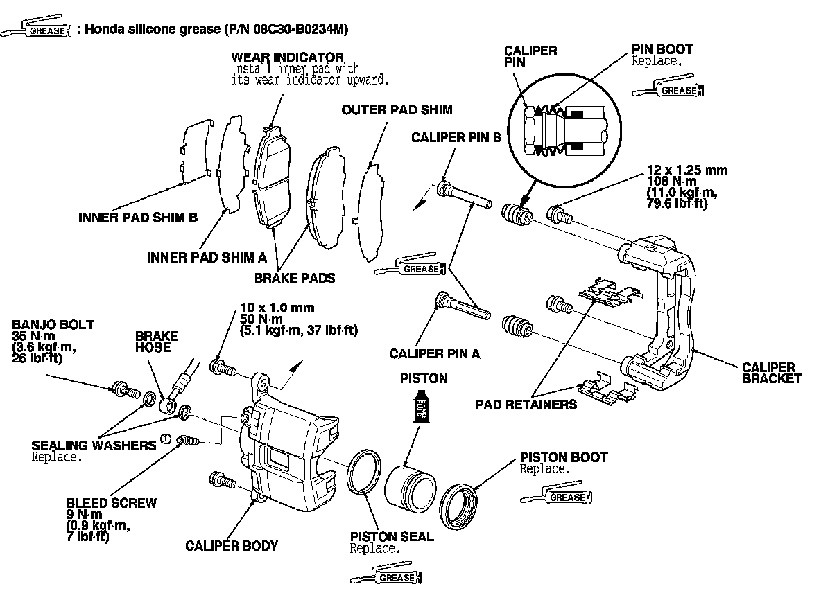 - When reusing brake pads, always reinstall them in their original positions to prevent loss of braking efficiency.