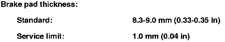 4. If any part of the brake pad thickness is less than the service limit, replace the rear brake pads as a set.