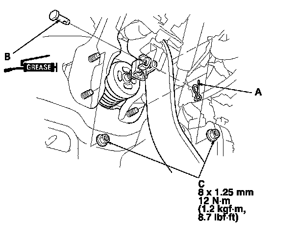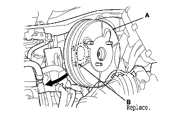 NOTE: Use the new brake booster gasket (B) during reassembly.