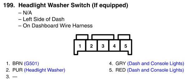 View 199 - Headlight Washer Switch Connector View (If equipped)