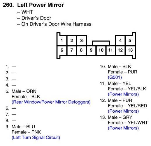 View 260 - Left Power Mirror Connector View